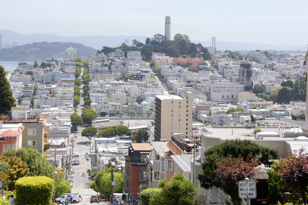 Blick vom Russian Hill auf den Telegraph Hill mit Coit Tower